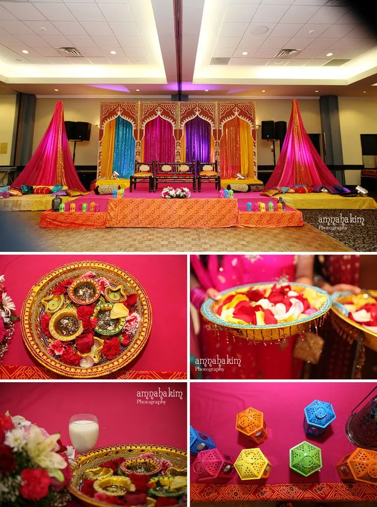 What is Indian pre-wedding celebrations known as Pooja, Mehndi or a Sangeet and ways to decorate them.