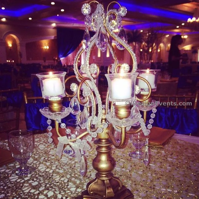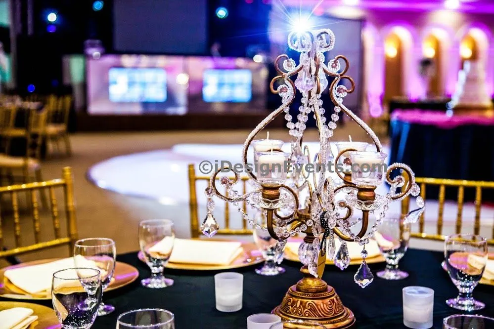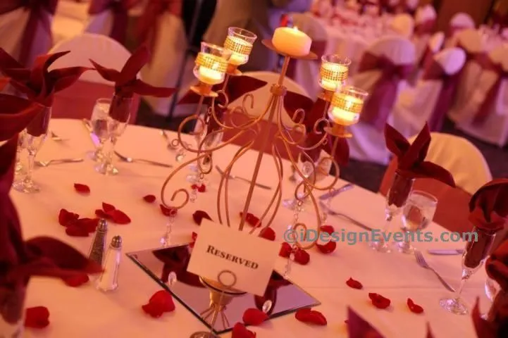 Red and Gold Indian Wedding Centerpiece Ideas | Gold Candelabra holder Rentals | Wedding Centerpiece