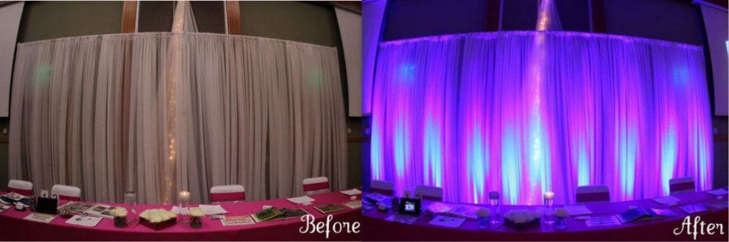 Got light? You must get it and it’s not just flipping on a light switch on and off at your wedding reception! Turning your wedding venue, wedding reception tent or any event site from standard to simply stunning is a work of art, and it does not have to break your bank. With iDesingEvents up lighting packages they start with as low as 399. Up lights and adding illumination to your décor is a must. “Lighting creates a mood,” says event designer Preston Bailey, we at iDesignEvents agree. And when it’s done well, lighting can make everything spectacular — including your wedding flowers, cake, and guests — look better. I’ll celebrate to that. Here’s the right way to plan your venue and reception lighting, with the right event design planner this should be easy with iDesignEvents.